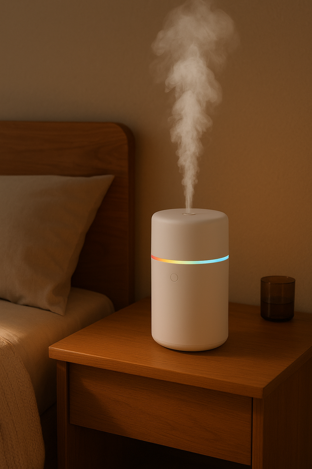 Ar seco, garganta irritada e sono ruim? 💧 Esse umidificador resolve: funciona como umidificador + luz noturna suave para criar um ambiente relaxante.